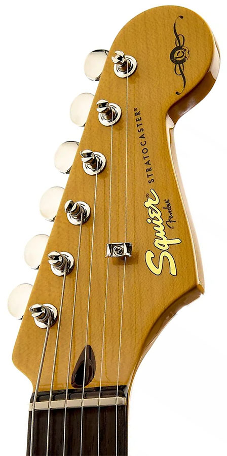 "The Simon Neil Stratocaster guitar puts Simon's own personal touch on a Squier Classic Vibe series instrument. Based on his Fender Custom Shop Time Machine™ '60s Stratocaster guitar, features include an alder body finished in Fiesta Red, vintage-tint gloss maple neck, Simon's signature on the back of the headstock as well as the Biffy Clyro band logo on the front, 3-ply mint green pickguard, three custom vintage-style single-coil pickups utilizing a mix of alnico III & V magnets - perfect for rhythm parts and rich, clear leads - vintage-style tuning machines and tremolo, and aged plastic parts."