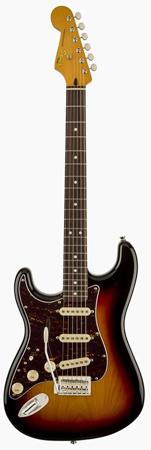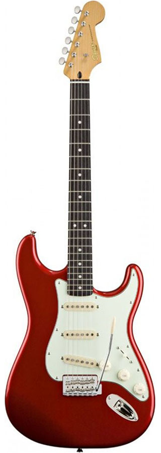 "The rough-and-tumble Classic Vibe Stratocaster '60s evokes that musically adventurous decade, with a few modern features added. The alder body has a Three-Color Sunburst or Candy Apple Red finish; the '60s-era vintage-tint gloss-maple neck has a rosewood fingerboard with 21 medium-jumbo frets and a modern 9.5" radius. The thick tone comes from the alnico V single-coil pickups--quick attack with a bit more midrange force and a knockout bridge pickup. Custom staggered polepieces provide improved string-to-string balance."