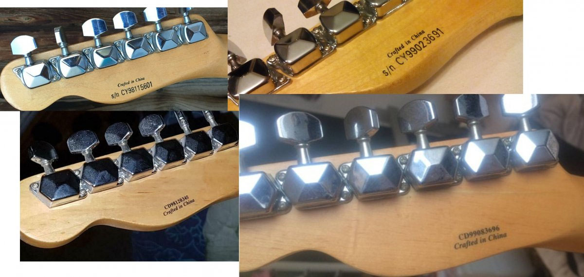 The Affinity got another makeover in 2001. The hex tuners were replaced with seal tuners. By comparing to the Affinity Strat from 2001, there is proof that sometime during this year the switch was made. In the pictures below both hexagonal and sealed tuners were found in on Affinity Strats with a 2001 serial number. Only an image of with sealed tuners could be found in 2001 for the Affinity Tele.