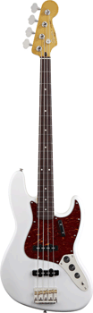 "Squier's Classic Vibe Jazz Bass '60s has all of the "deluxe" elements its Fender big brother had when it was introduced in the 1960s a groovy offset waist, a narrow fast-action maple neck with a rosewood fingerboard, two custom single-coil pickups, individual volume controls that let players "solo" either pickup or blend them, and a master tone control for overall sound shaping. The look is pure Fender--a classic Olympic White finish on a basswood body with a tortoise shell pickguard, thumb rest and "HiMass" bridge with brass barrel saddles. The vintage-tint gloss-maple neck has a rosewood fingerboard with 20 vintage-style frets and a modern 9.5" radius. Tonal versatility and clarity with a quick, punchy up-front sound."