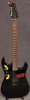 - Unique Features: “Showmaster” on reverse Headstock, Cat’s Eyes & Claw Scratch Graphic on Body, 2 String-Guides, Black Headstock with Claw Scratch Graphic