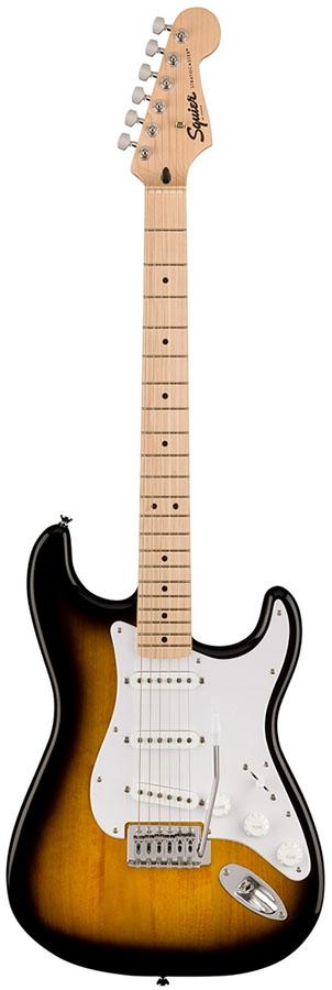 - Other Features: Black Squier Logo, Single String Tree, White Plastic Control Knobs, White Switch Tip, Black Dot Position Inlays