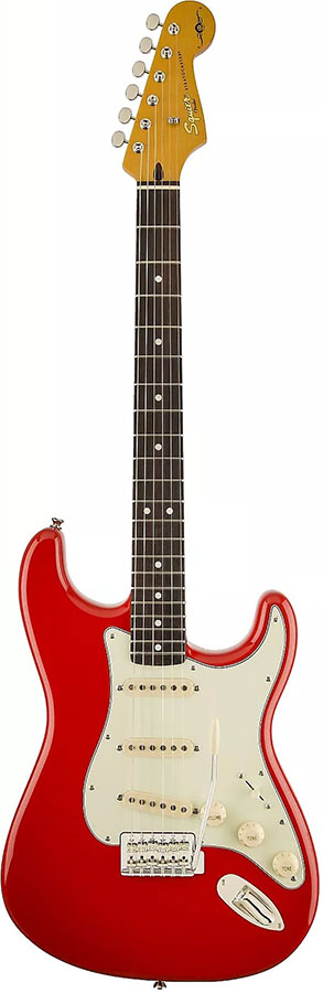 "The Simon Neil Stratocaster guitar puts Simon's own personal touch on a Squier Classic Vibe series instrument. Based on his Fender Custom Shop Time Machine™ '60s Stratocaster guitar, features include an alder body finished in Fiesta Red, vintage-tint gloss maple neck, Simon's signature on the back of the headstock as well as the Biffy Clyro band logo on the front, 3-ply mint green pickguard, three custom vintage-style single-coil pickups utilizing a mix of alnico III & V magnets - perfect for rhythm parts and rich, clear leads - vintage-style tuning machines and tremolo, and aged plastic parts."