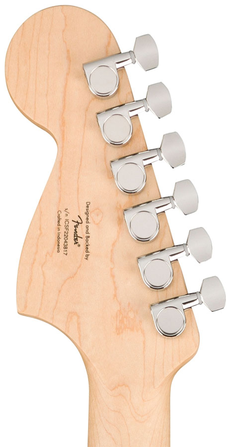 - Other Features: Black Switch Tip, Black Control Knobs, Black Squier Logo, Pearloid Dot Position Inlays (526), Black Dot Position Inlays (555)