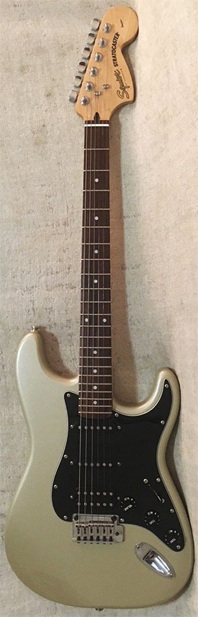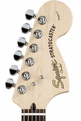 - Unique Features: Large '60s Style Headstock, Parchment Plastic Parts, Gold and Black Squier Logo, Engraved Neckplate, Dot Position Inlays